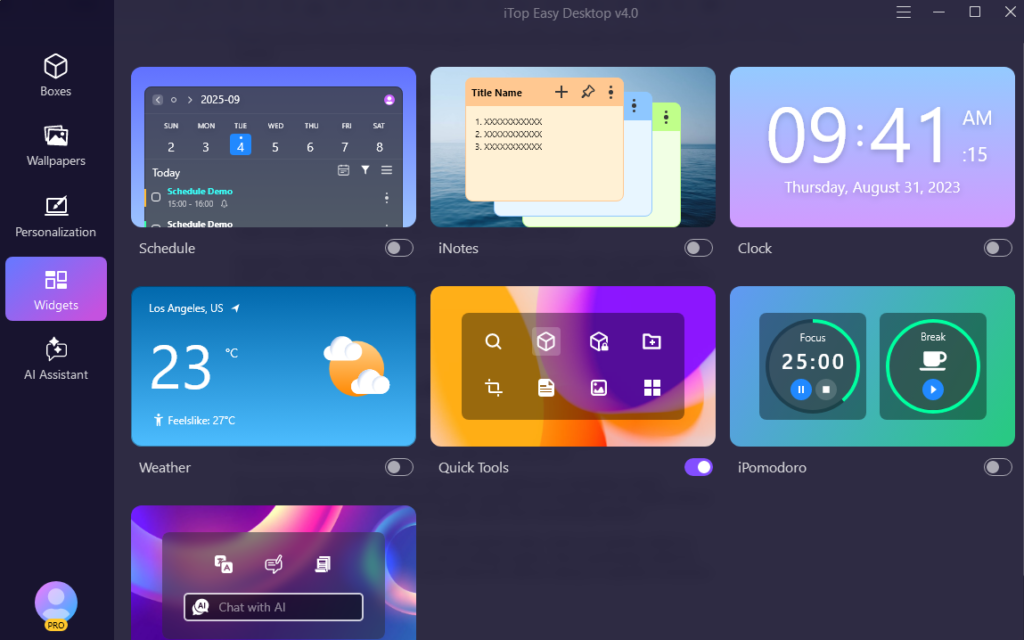 Decluttering doesn’t have to mean constant cleanup sessions or rigid rules. With iTop Easy Desktop, organization becomes something that happens naturally in the background. Smart Box management, useful widgets, built-in AI assistance, and easy personalization work together to create a desktop that feels calm, efficient, and personal.